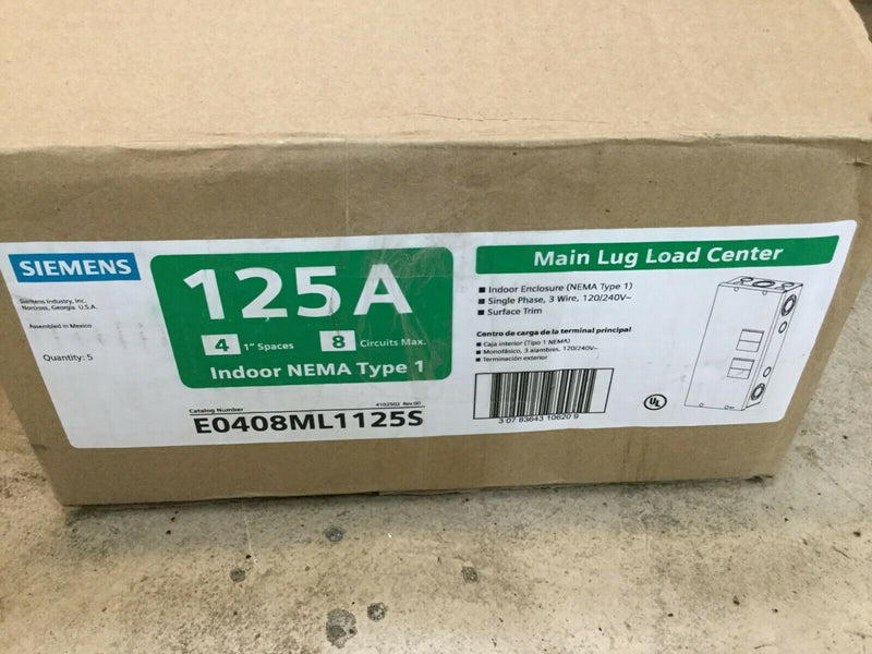 Siemens E0408ML1125SU 125 Amp 4 Space 8 Circuit 120/240V Indoor Main Lug Load Center
