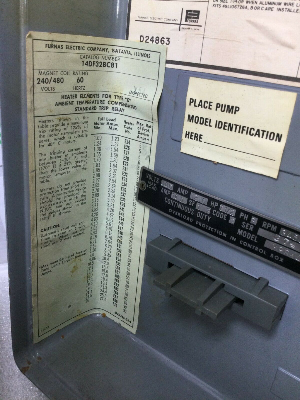 14BDF32BC81 FURNAS 3 PHASE MAGNETIC STARTER 440V 12A 71/2HP RPM 3450