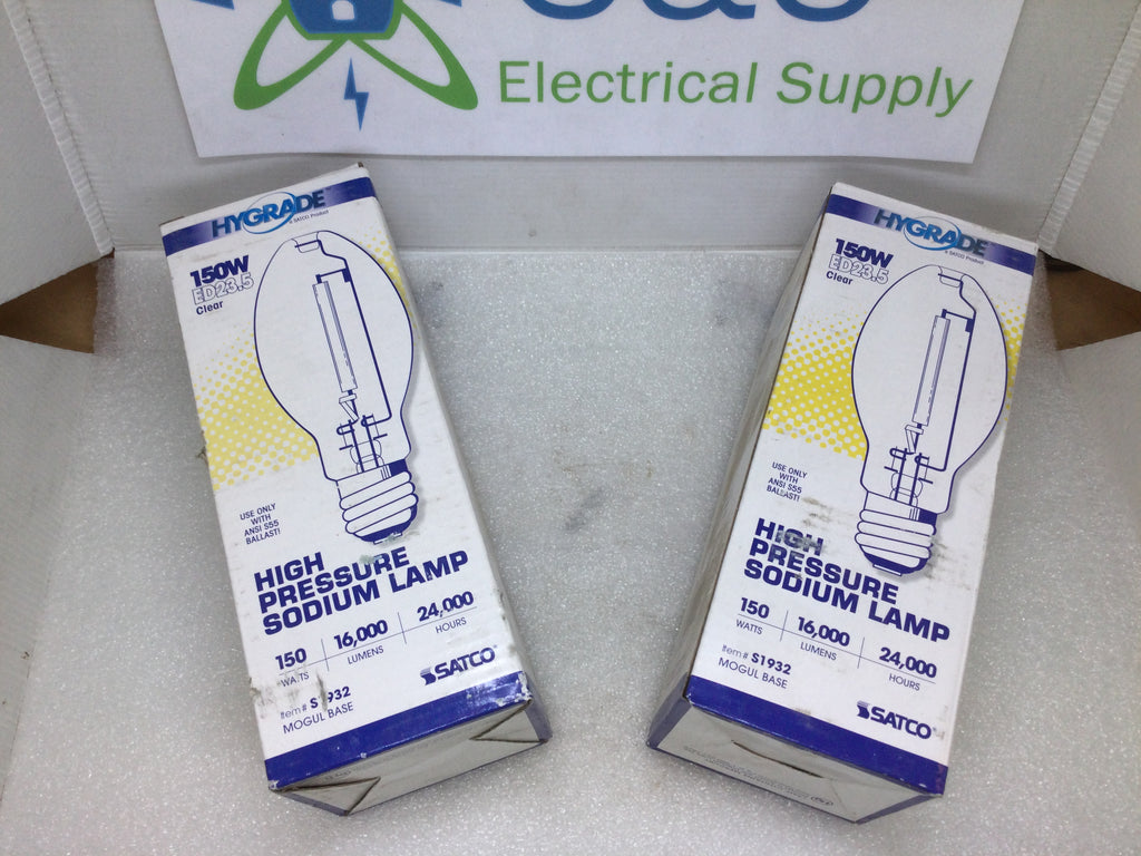 (2) Satco S1932, 150W High Pressure Sodium Lamps, Mogul Base,16k Lumens, 24K Hour Life, Type HPS