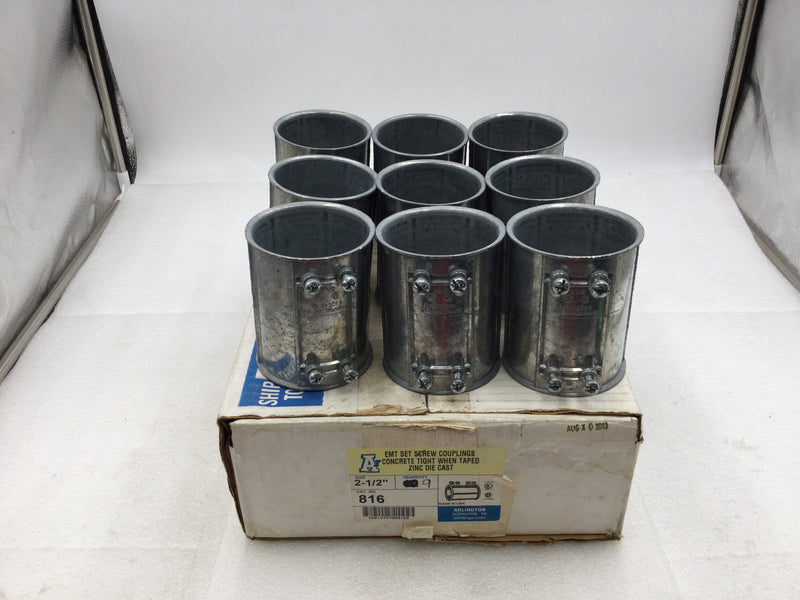 Arlington ARL-816 2-1/2" EMT Set Screw Coupling - Lot of 9