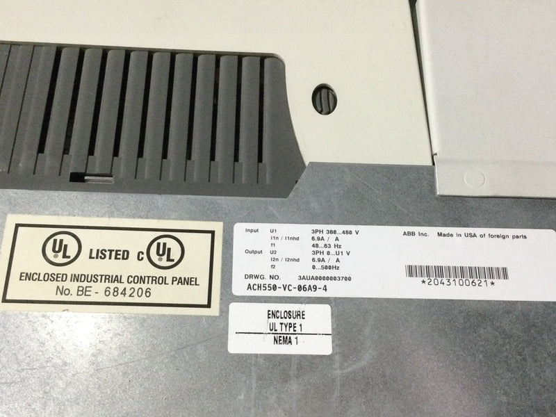 ABB ACH550-VC-06A9-4 HVAC Driver 6.9 Amp 3 PH 48-63HZ 380-480 VAC 42.5" x 5"