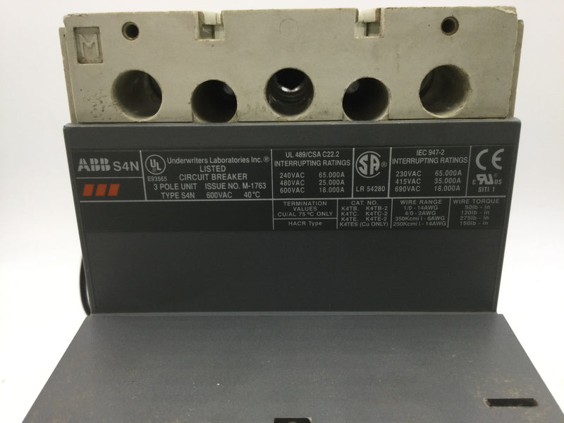 ABB S4N250BWAH 250 Amp 3 Pole 600V LI Trip Circuit Breaker
