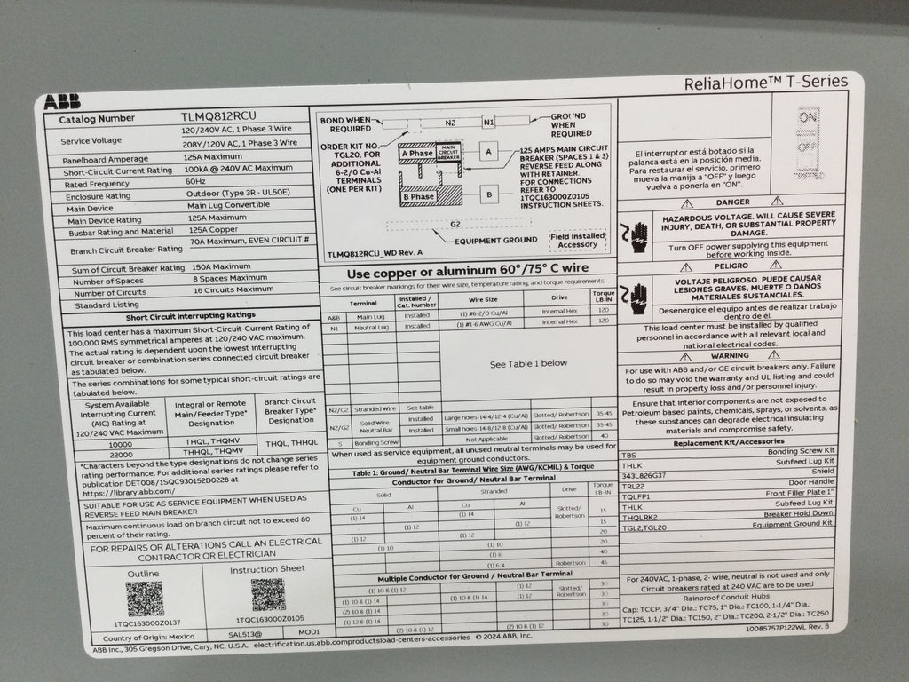 ABB TLMQ812RCU 125 Amp 8 Space 120/240V Outdoor Cover Only 11 5/8" x 11 1/8"