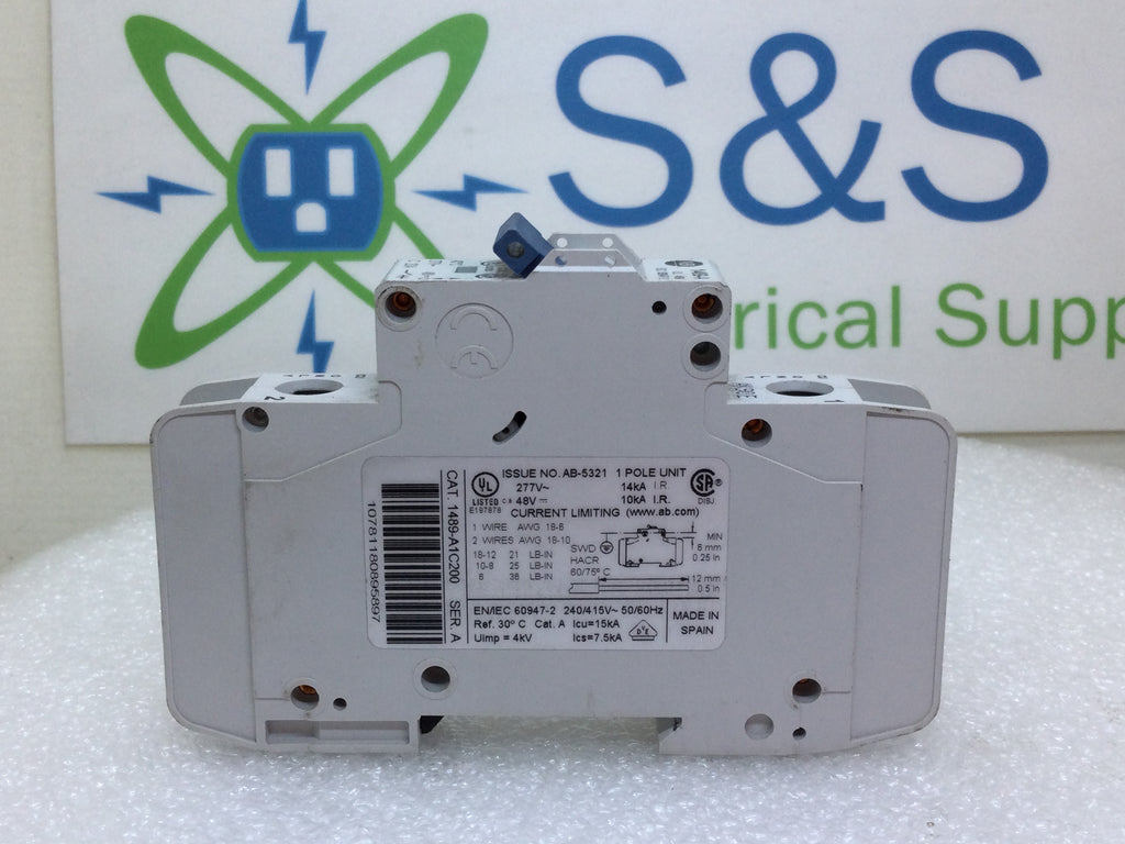 Allen-Bradley 1489-A1C200 20 Amp 1 Pole 277V Din Rail Mount Circuit Breaker