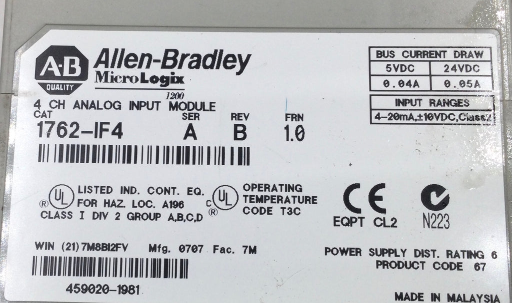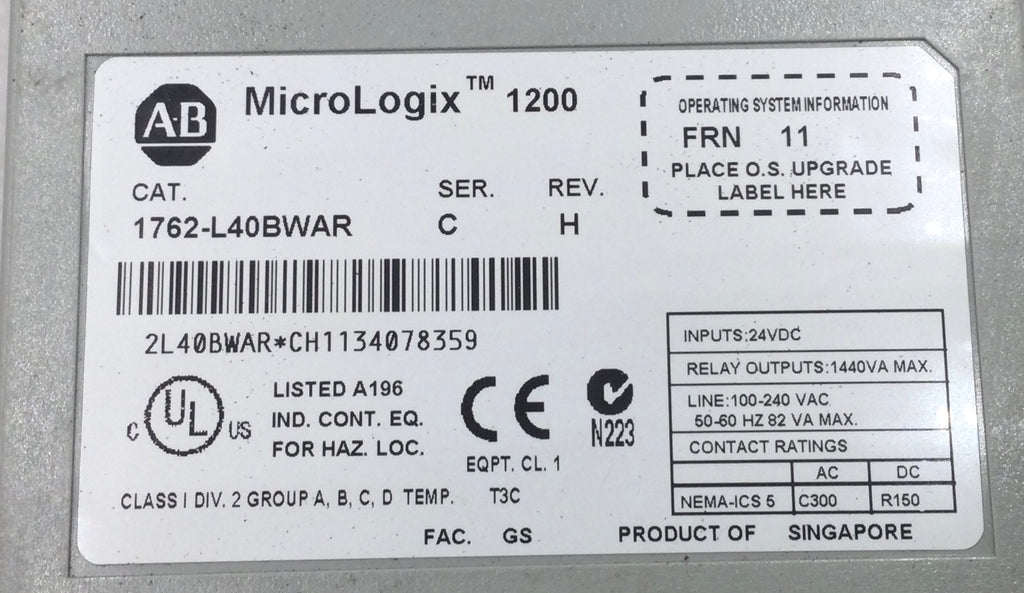 • Model #: 1763-L40BWAR/Micrologix 1200
