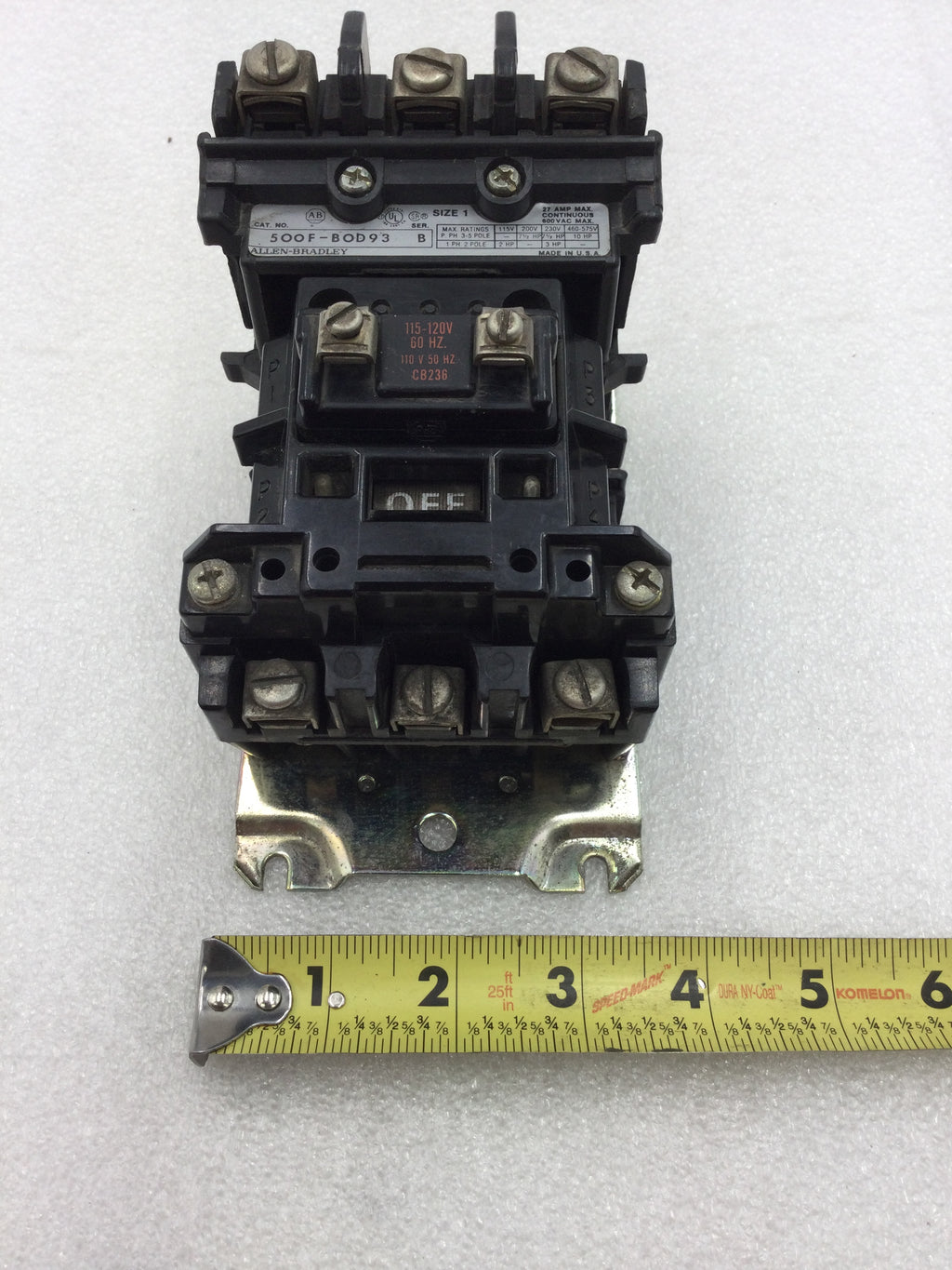 Allen-Bradley 500F-BOD93 Series B Contactor/Starter 27 Amp 3 Pole 200-575 VAC 7.5 to 10 HP with 120 VAC Coil