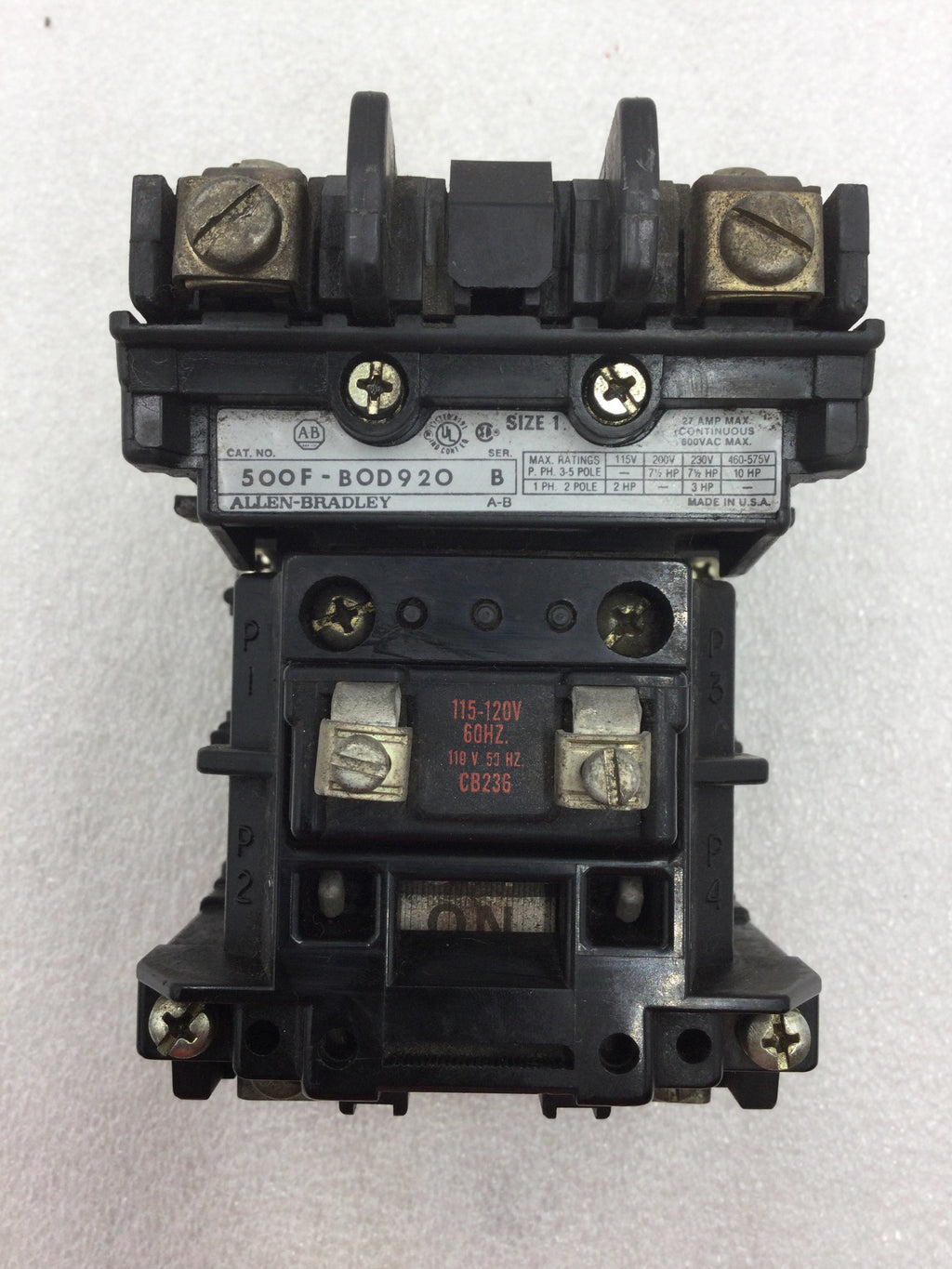 Allen-Bradley 500F-BOD920 Series B Contactor/Starter 27 Amp 2 Pole 115-575 VAC 2 to 3 HP with 120 VAC Coil