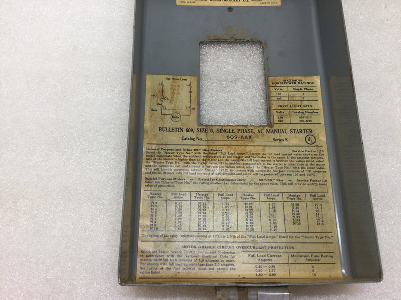 Allen Bradley 609-AAX Manual Starter Cover Only
