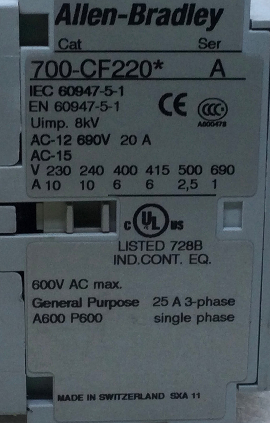Allen-Bradley 700-CF220*A 25 Amp 3-Phase 600V Relay