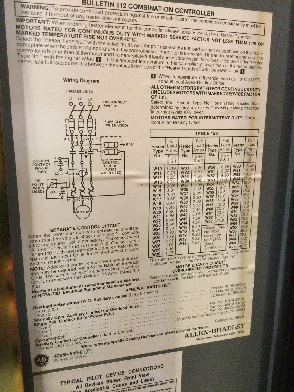 Allen-Bradley Bulletin 512 Combination Starter W/ Disconnect 509-Cod Nema Size 2