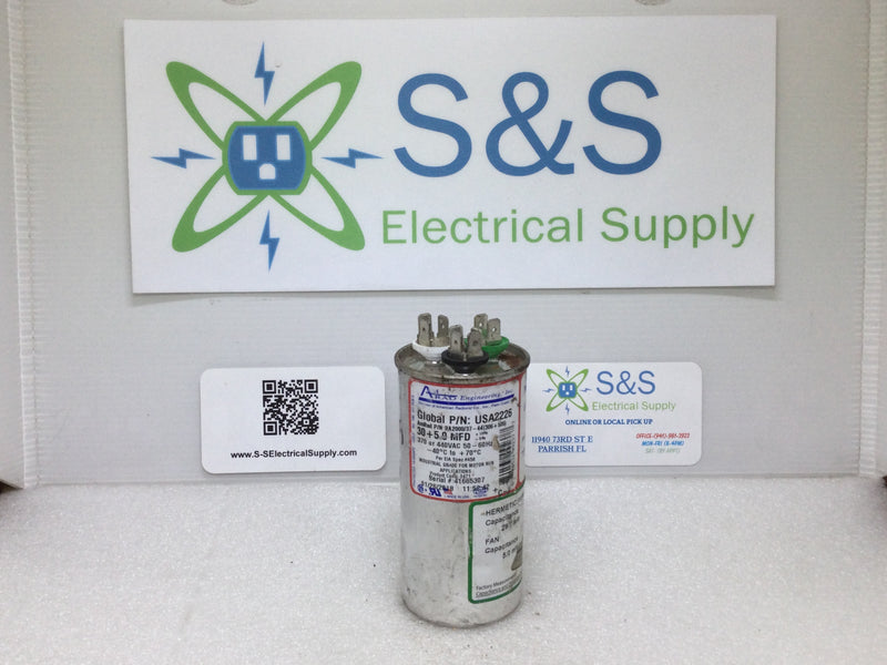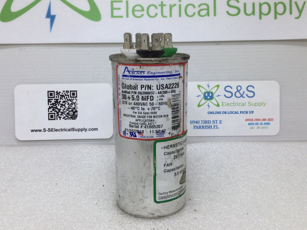 AMRAD CAPACITOR RA2000/37 30+5MFD +10% -5% 370/440VAC 50/60HZ SERIAL #41665307 USA 2226