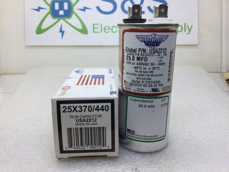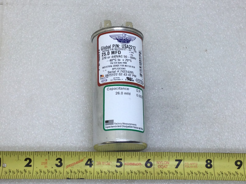 Amrad USA2212 25.0MFD +10%/-5% 370/440V 50/60Hz 70c/-40c Capacitor