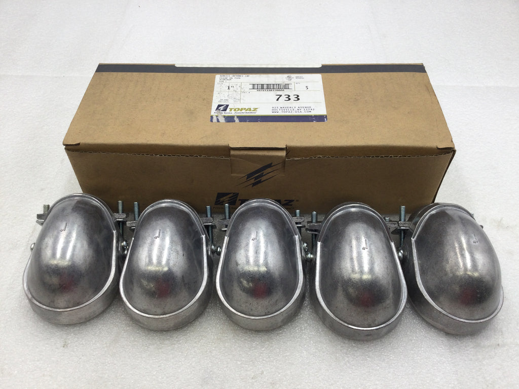This set of 5 Topaz 733 1" Aluminum Clamp-On Service Entrance Caps provides reliable and secure protection for service entrances. The durable aluminum construction ensures long-lasting performance, while the easy clamp-on design makes installation quick and convenient. Trust in Topaz for industry expert quality and efficiency.