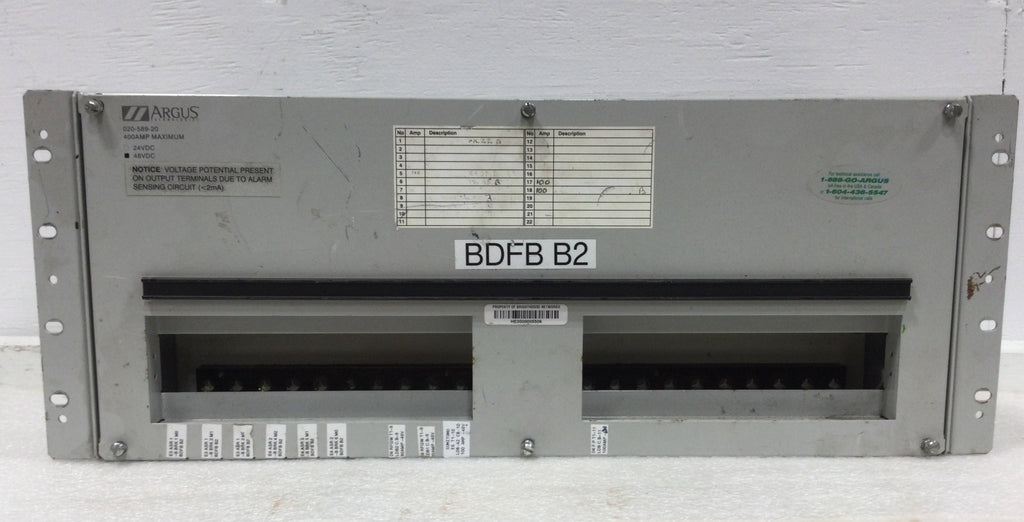 Argus Technologies 020-589-20 400 Amp Max 48 VDC LV Telecom 20 Circuit Rack Mount Breaker Panel