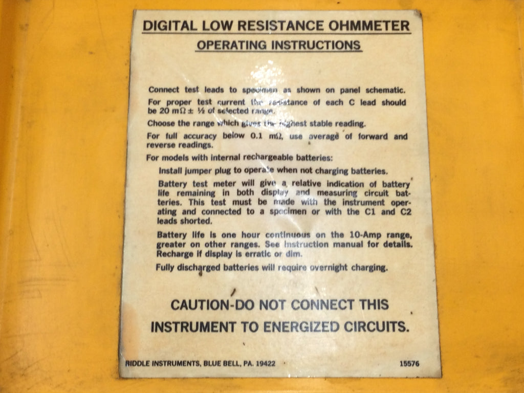 • Type: Digital Low Resistance Ohmeter w/Fuses up to 0.2 Amps