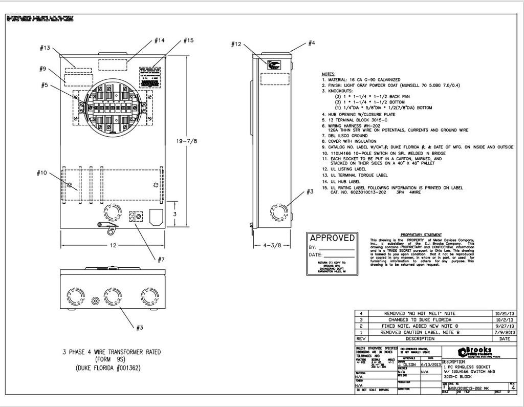 The Brooks Utility 602U3010C13-754 is a meter socket guts, designed for three-phase, four-wire service. Here are the specifications: