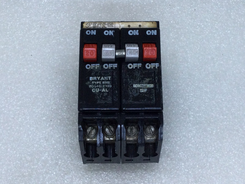 Bryant Type BRD BQ240-2120 20/40 Amp 120/240v Quad Circuit Breaker