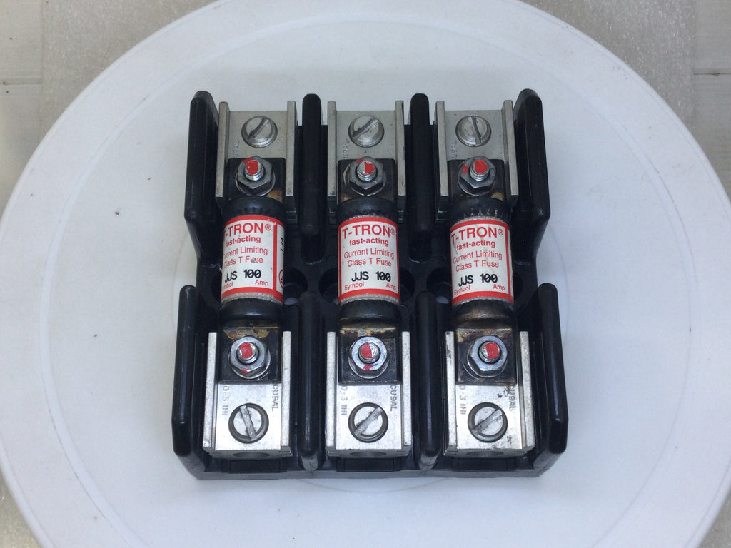 Bussman T60100-3C 100A 600V Class T Modular Fuse Block w/ 3 x JJS100 Fuses