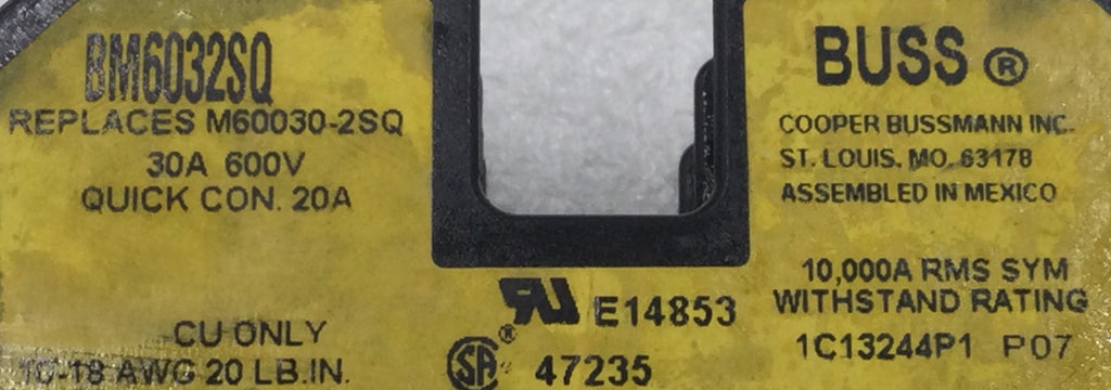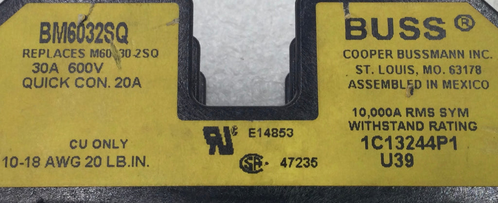 Bussmann BM6032SQ 30 Amp 2 Pole 600V Fuse Block Holder