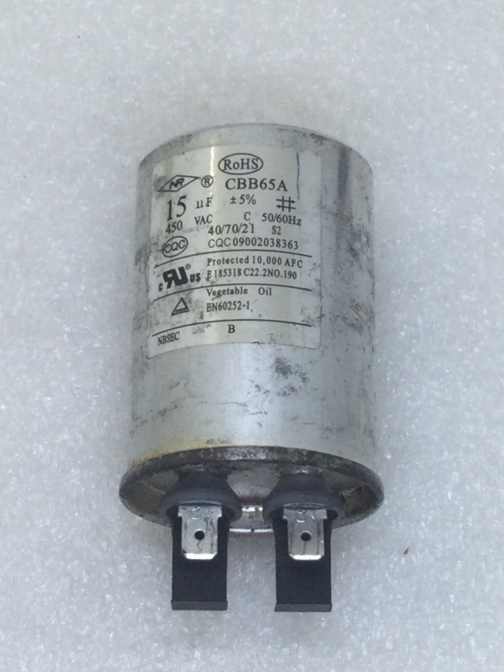 CBB65A Capacitor 15uf +/-5% 450 VAC 50/60 Hz (CQC09002038363)