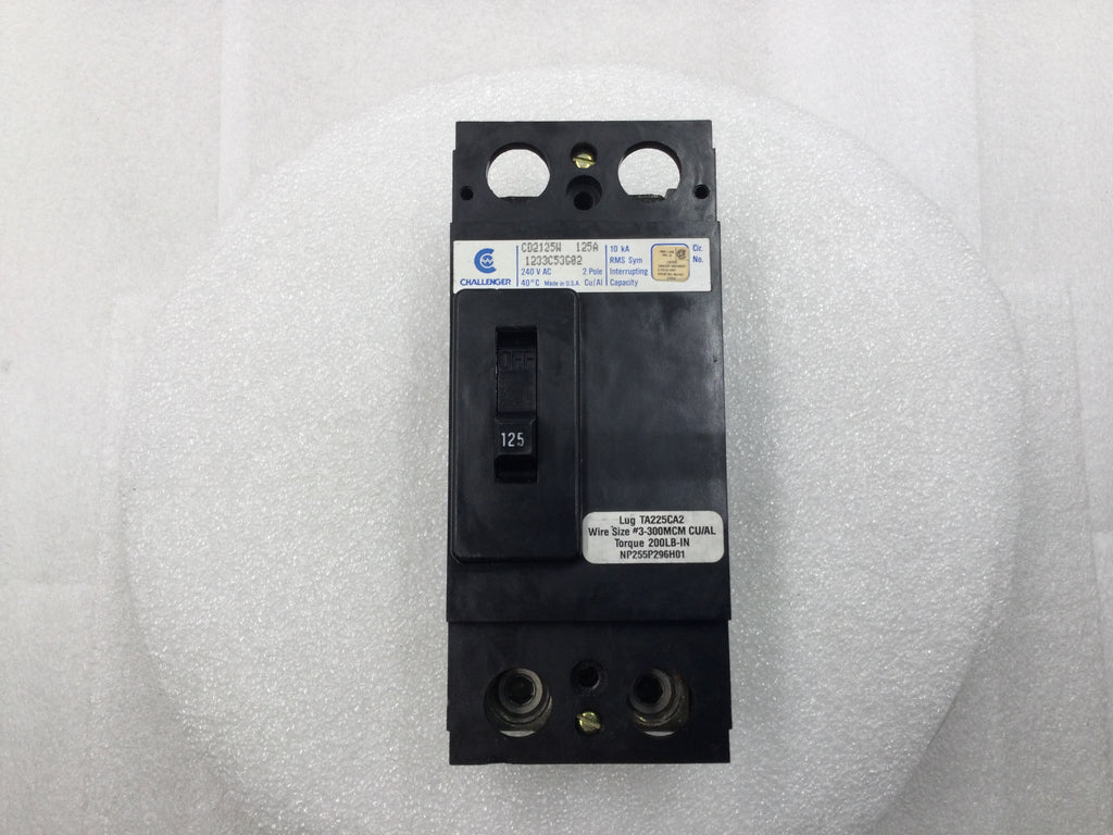 The Challenger CD2125W is a heavy-duty 125  amp, 2 pole circuit breaker designed for 240V applications. Built to meet rigorous electrical standards, this breaker provides reliable overcurrent protection for residential and light commercial panels. Its robust construction ensures consistent performance in demanding electrical systems. Compatible with Eaton/Cutler Hammer, for more information, please feel free to contact our sales team: (941) 981-3923.