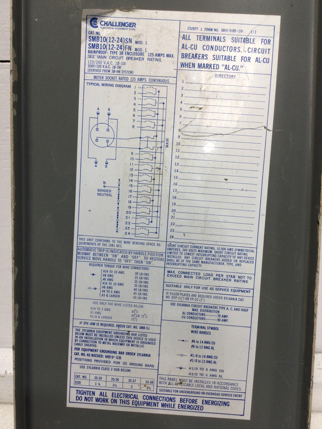 This Challenger SMB10(12-24)SN/FN 125 Amp 24 Space 120/240V Cover Only is the perfect solution for your electrical needs. With a high amperage of 125 and 24 spaces, it provides ample room for all your devices. The sturdy construction and standard size make it a reliable and convenient choice.