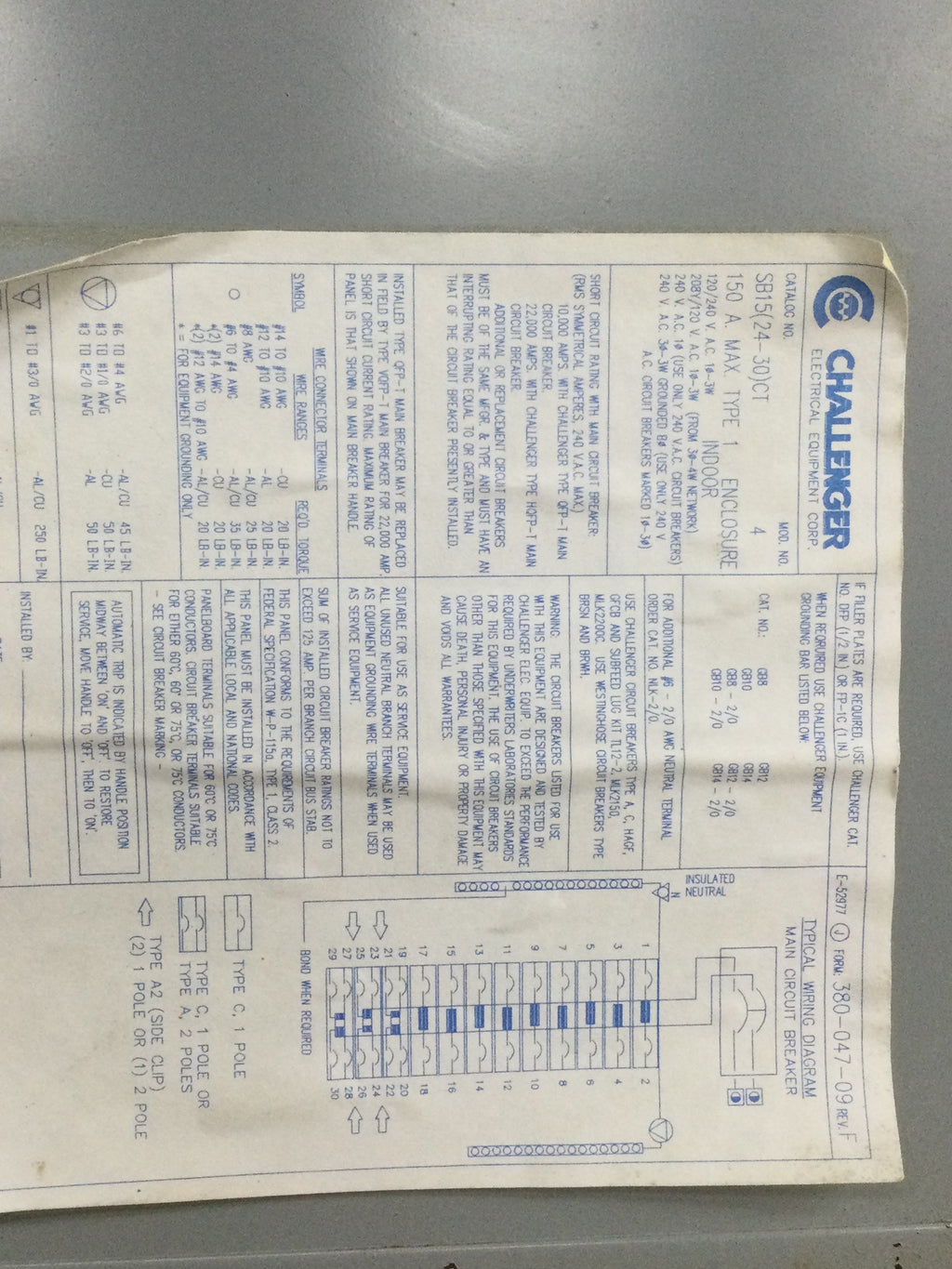 Challenger SB15(24-30)CT 150 Amp 24 Space 120/240V Door w/Main 28 1/8" x 15 1/8"