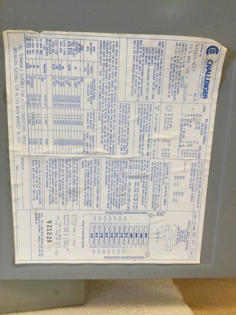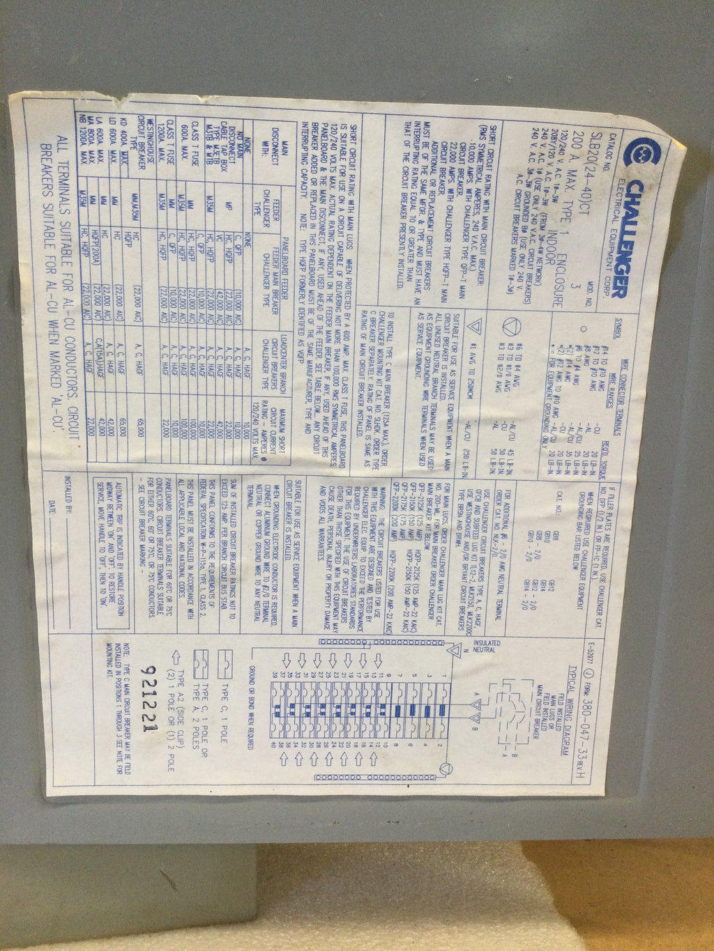Challenger SLB20(24-40)CT 200 Amp Panel Cover 3R Enclosure