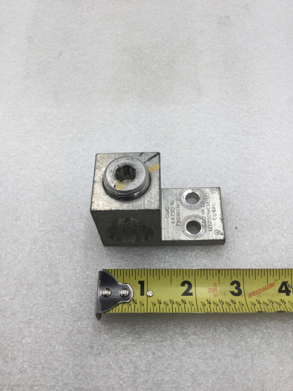 The CMC Mechanical Lug LA-750-10 is designed for reliable electrical connections, accommodating conductors from 750 MCM down to two 250 MCM or 1/0 cables. Constructed with durable CU9AL alloy, it ensures excellent conductivity and corrosion resistance. Ideal for professional installations requiring secure and efficient mechanical lugs, this model supports heavy-duty applications with precision and safety.