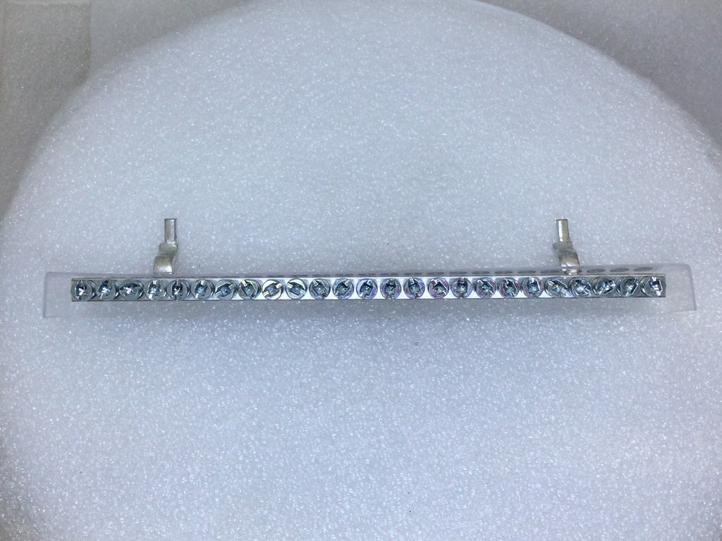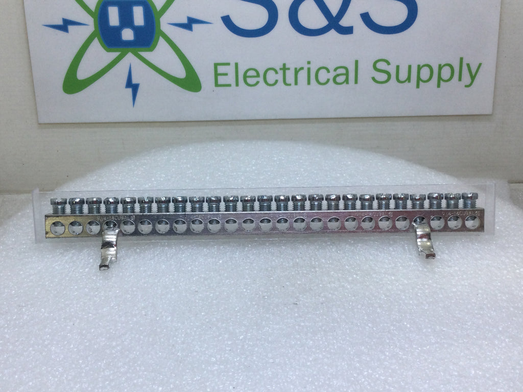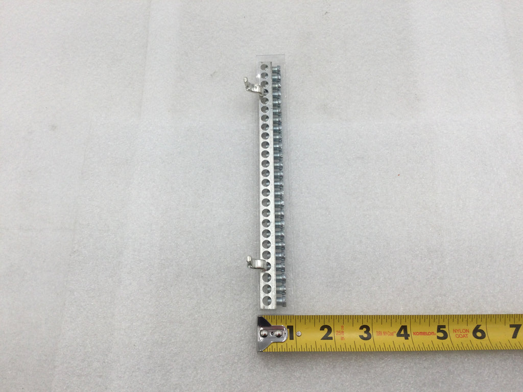 CMC NA35-S grounding bar accommodates 25 positions for wire gauges 4-14 AWG. Features a protective plastic cover to shield connections and reduce contamination.