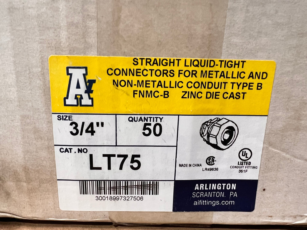 "As an expert in the industry, I highly recommend the Arlington LT75 Straight liquid-tight connectors. These connectors are suitable for both metallic and non-metallic conduit type b, offering versatility and convenience. With a quantity of 50 in each box, you'll have plenty to complete your projects efficiently."