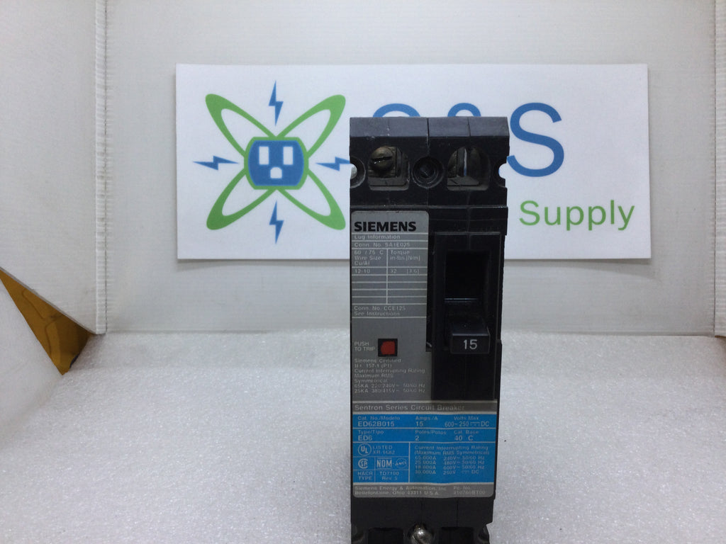 Siemens ED62B015 Sentron Series 15 Amp 240 Volts Circuit Breaker