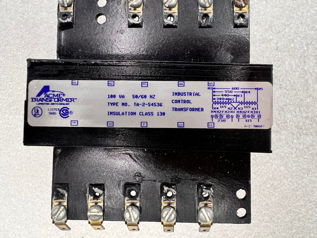 Acme Electric TA-2-54536 Industrial Control Transformer Primary: 480/600 Secondary: 110/230