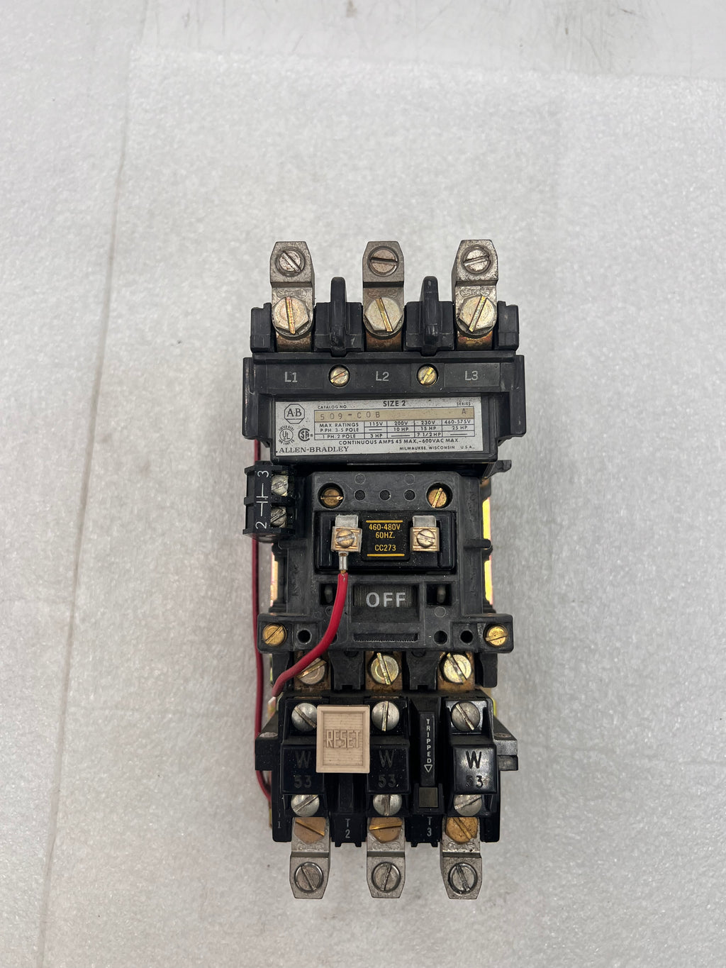 Allen-Bradley 509-COB Starter NEMA Size 2 Series A 25HP @460-575v 1 Phase 3 Phase