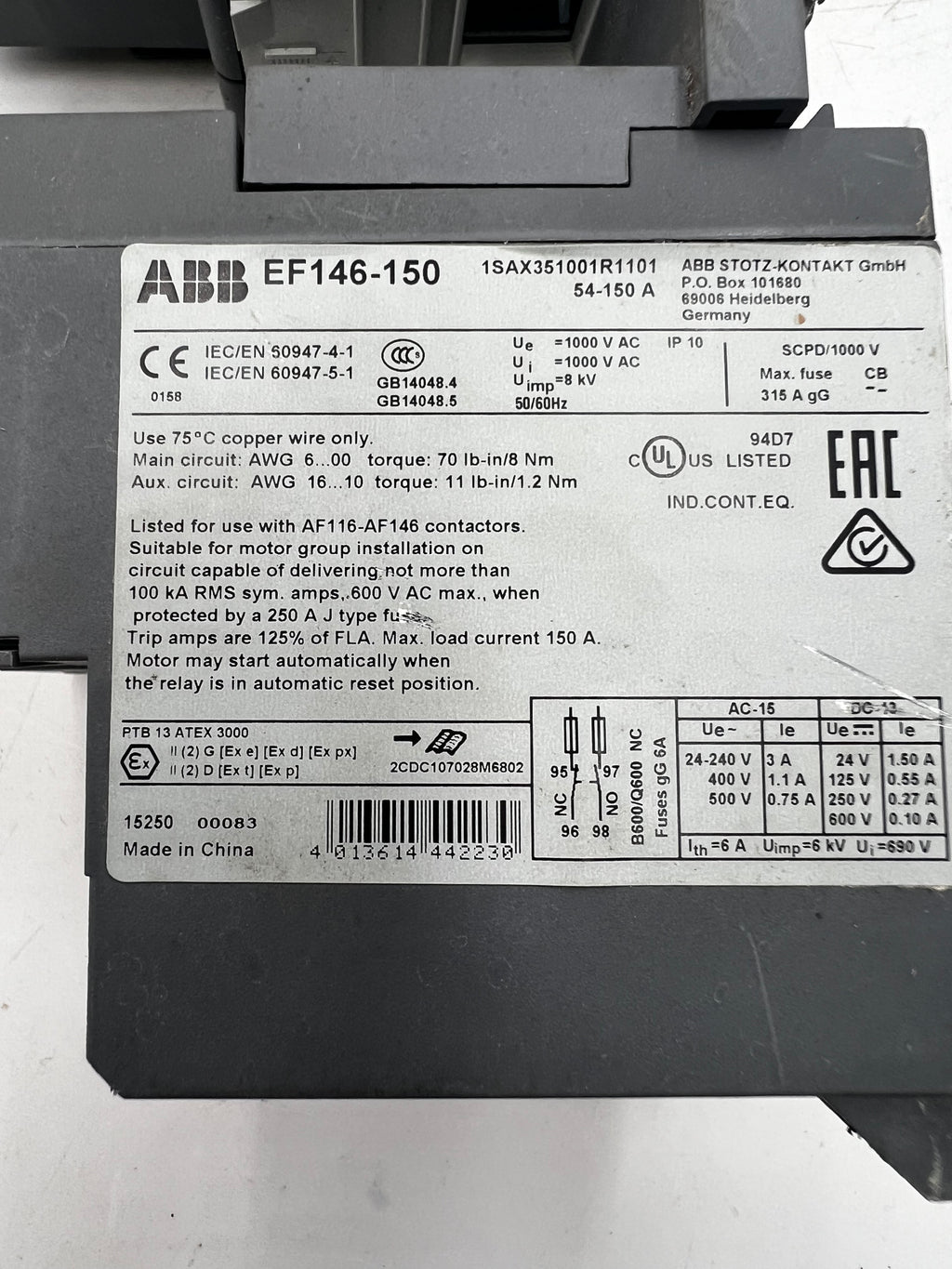 ABB AF116-30 Contactor With ABB EF146-150 Electronic Overload Relay