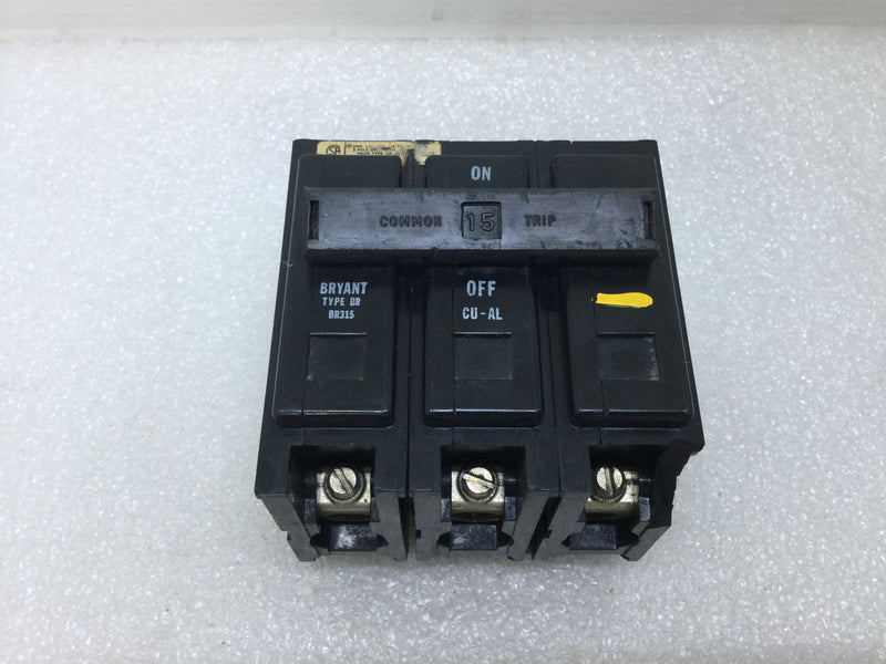 Bryant BR315 15 Amp 3 Pole 240vac Type BR Circuit Breaker