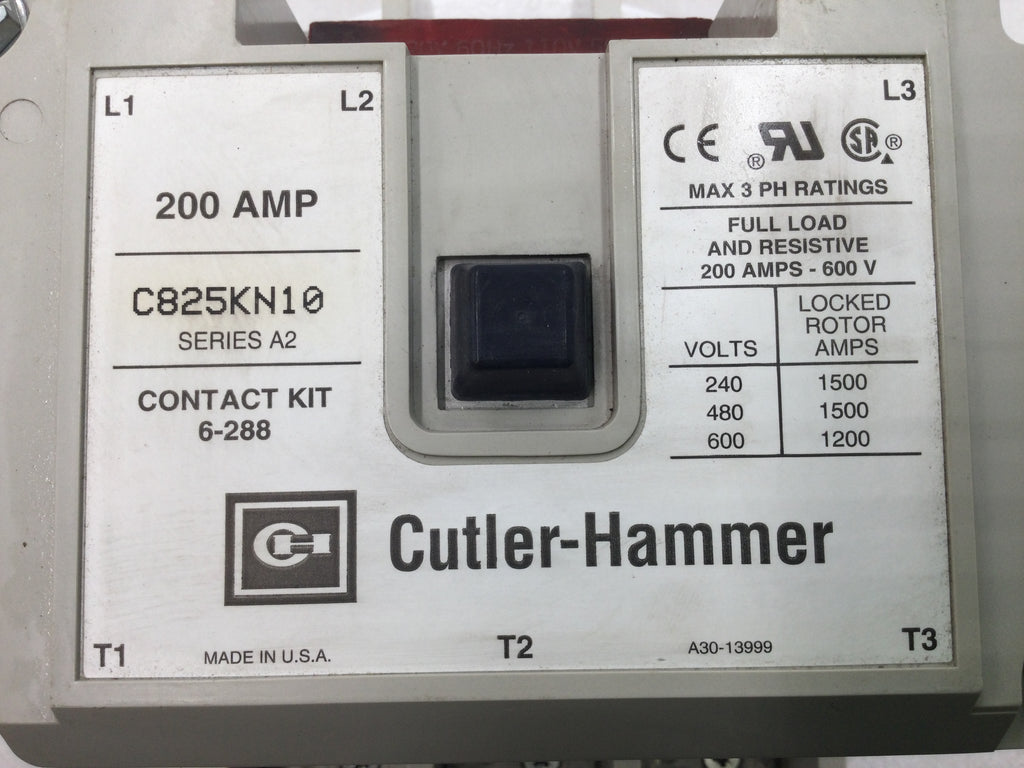 Cutler Hammer C825KN10 200 Amp 3 Pole 600V Coil Contactor Kit