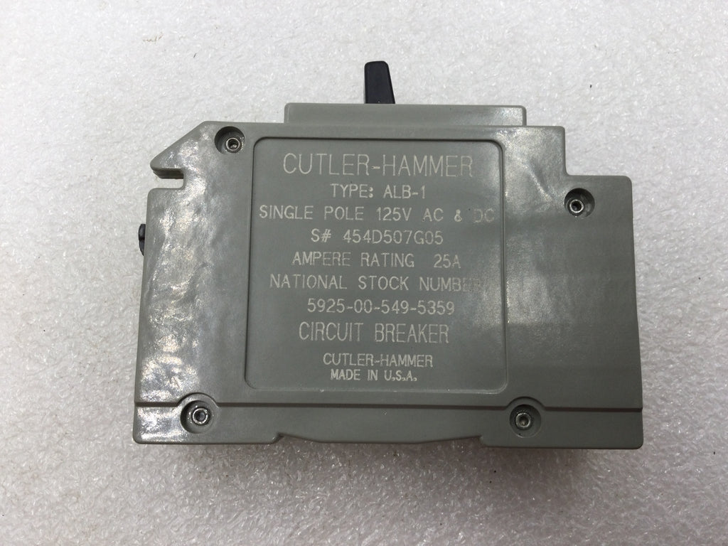 The Cutler-Hammer ALB-1 is a reliable single-pole circuit breaker rated for 25 amps and compatible with both 125 VAC and VDC applications. Designed for precise protection, it ensures safe circuit operation and helps prevent overloads and electrical faults in residential or commercial settings. Its robust construction supports long-lasting performance in demanding electrical systems.
