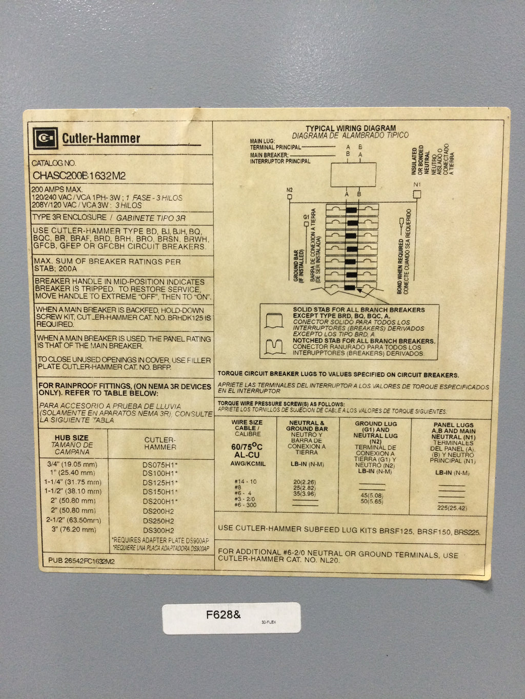 Cutler-Hammer CHASC200B1632M2 200 Amp 2-Pole 240V Main-Breaker Panel