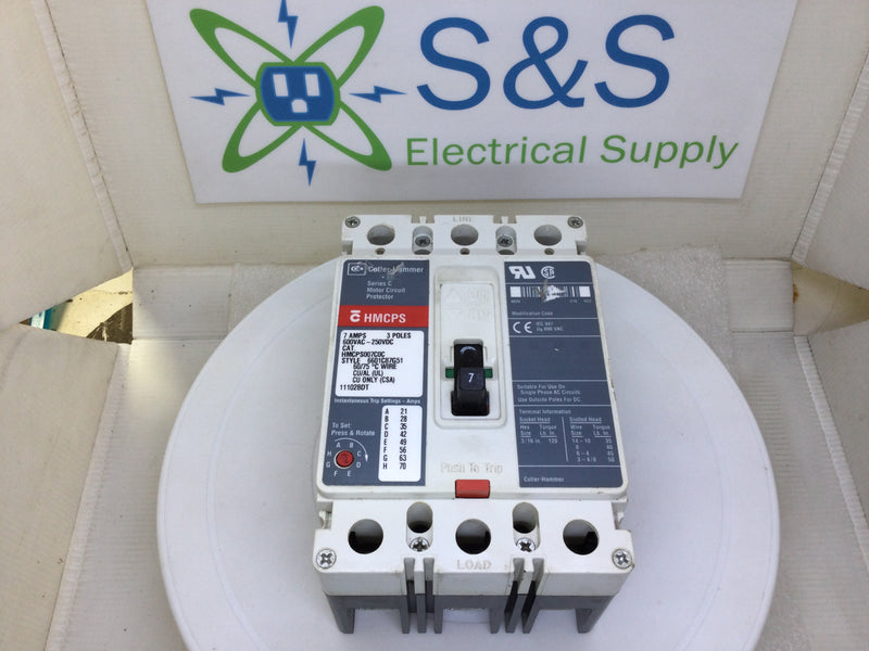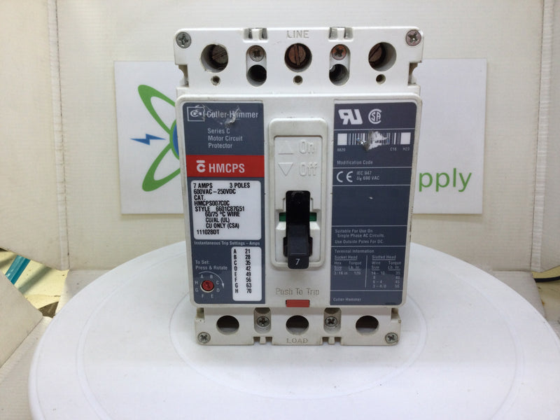 Cutler-Hammer HMCPS007C0C 7 Amp 3 Pole 600V Circuit Breaker