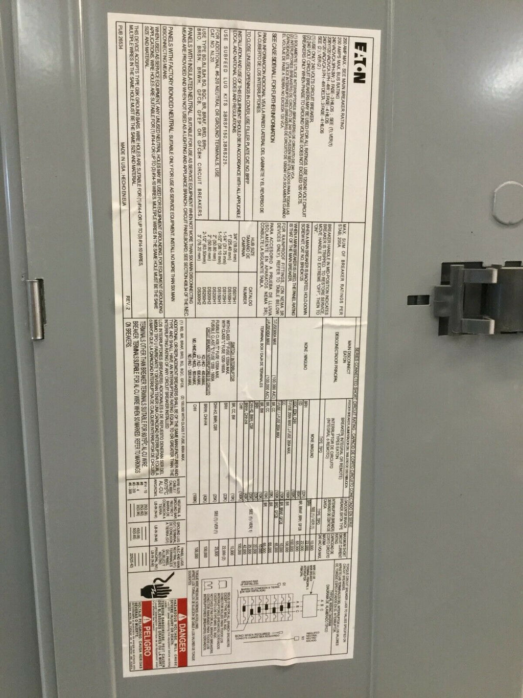 Cutler Hammer Panel Cover / Door 200 Amp 120/240v 21/42 Spaces