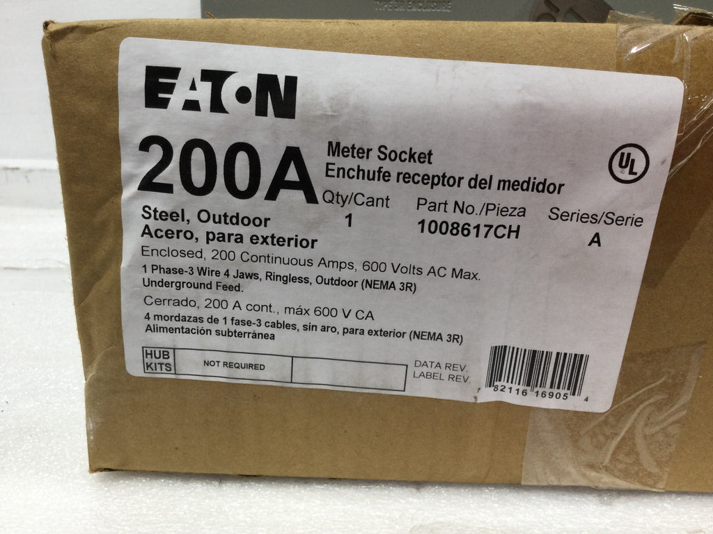 Eaton Meter Socket Enclosure 1008617CH 200 Amp 1 Phase 3 Wire 4 Jaw Ringless Outdoor Underground Feed