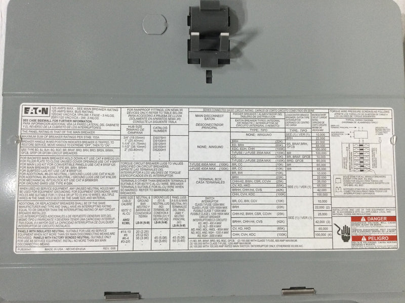 Eaton Cover/Door Only 12 Space 125 Amp 120/240V 1 Phase 3 Wire