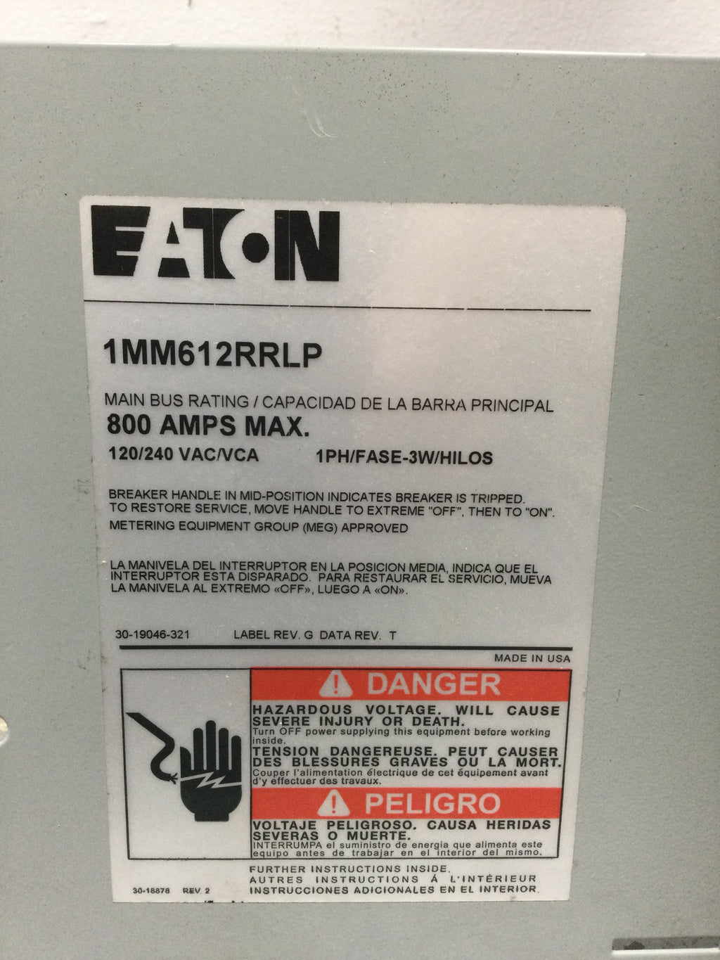Eaton 1MM612RRL residential meter stack 125 Amp Bus Rating 800 Amp 120/240v 1 Phase 3 Wire 6 Position Mounting Hardware
