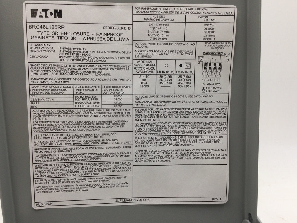 Specially narrow body panel is designed for easy installation, Eaton's BR load centers house the branch circuit breakers and the wiring required to distribute power to individual circuits. This panel is a main lug panel which is used as sub-panel to add circuits to an existing main breaker panel.