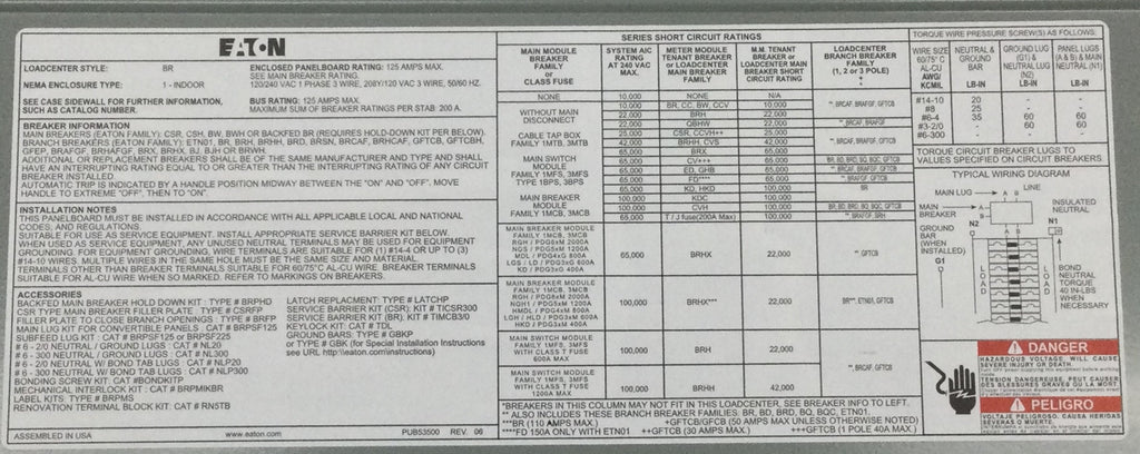 • Used with: type BR 1 in. breakers ( Ask us for compatible inventory)