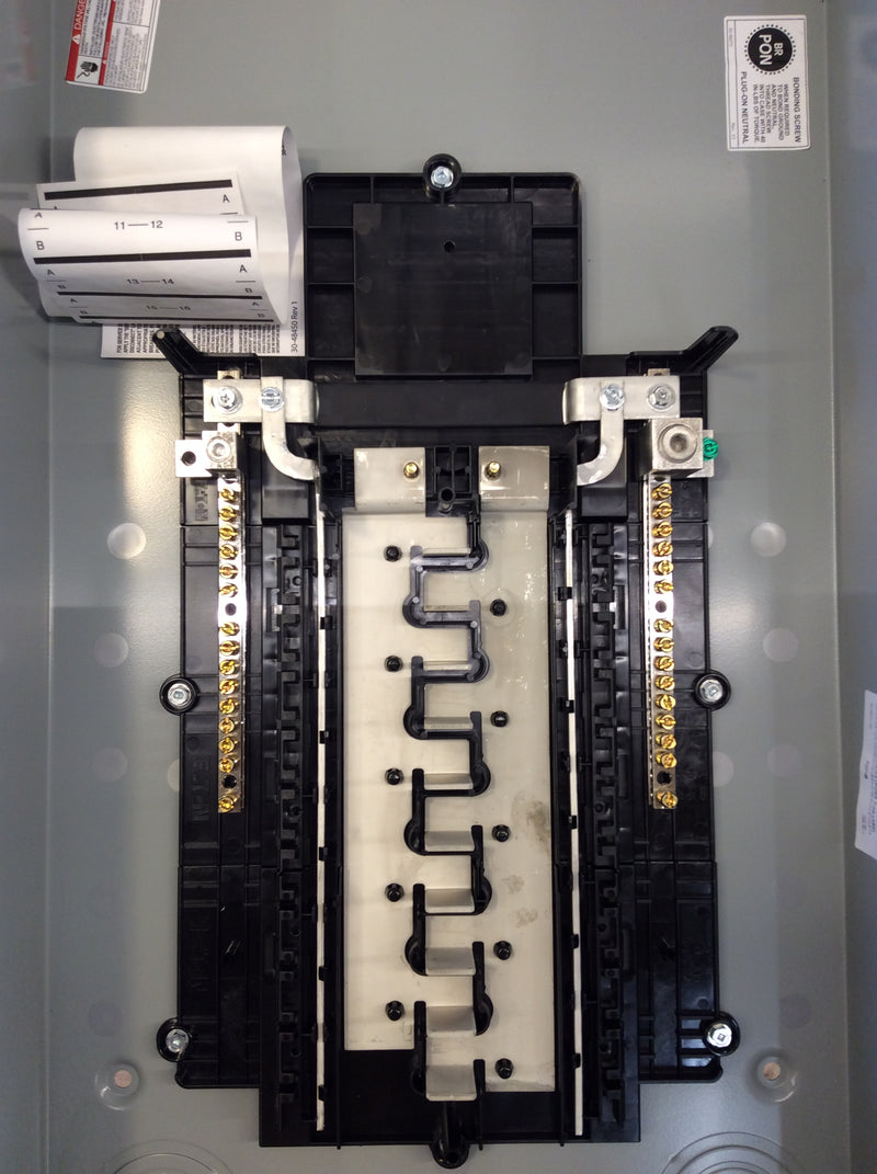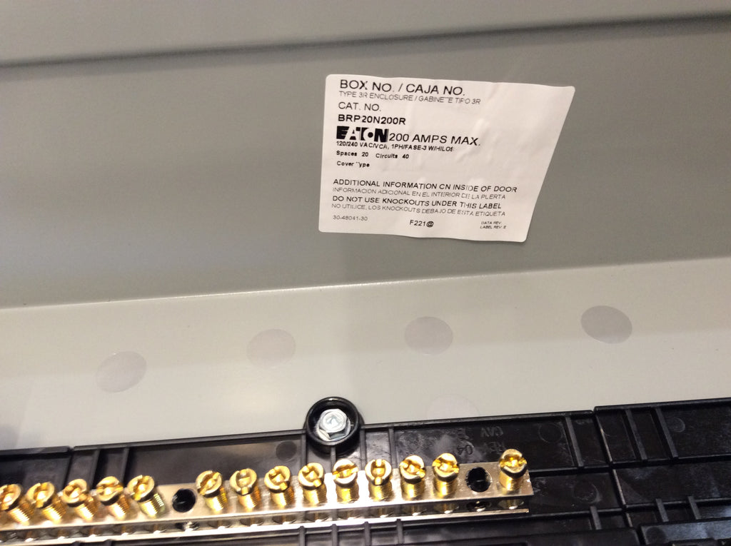 This Eaton BRP20N200R 20 Space 200A 120/240VAC Type BR/PON Plug On Neutral Load Center is brand new and provides reliable power distribution for your home. It offers 20 space/200A ratings per phase for up to 24 circuits, and comes with an insulated neutral bonding plate and side wire terminals for easy installation. This load center is designed with safety and durability in mind - its trim features a plastic latch and slotted acorn screws that can hold up to 2 AWG wire, and its metallic construction ensures long-term strength and reliability.