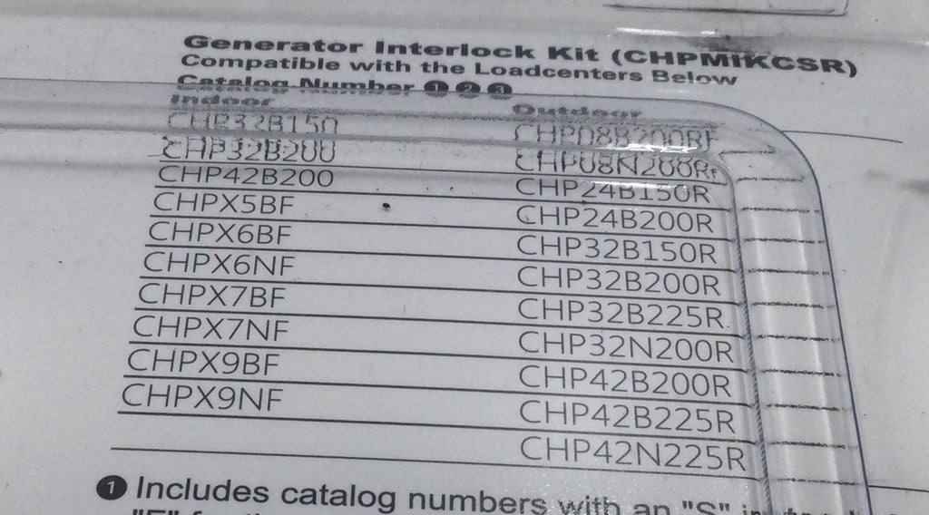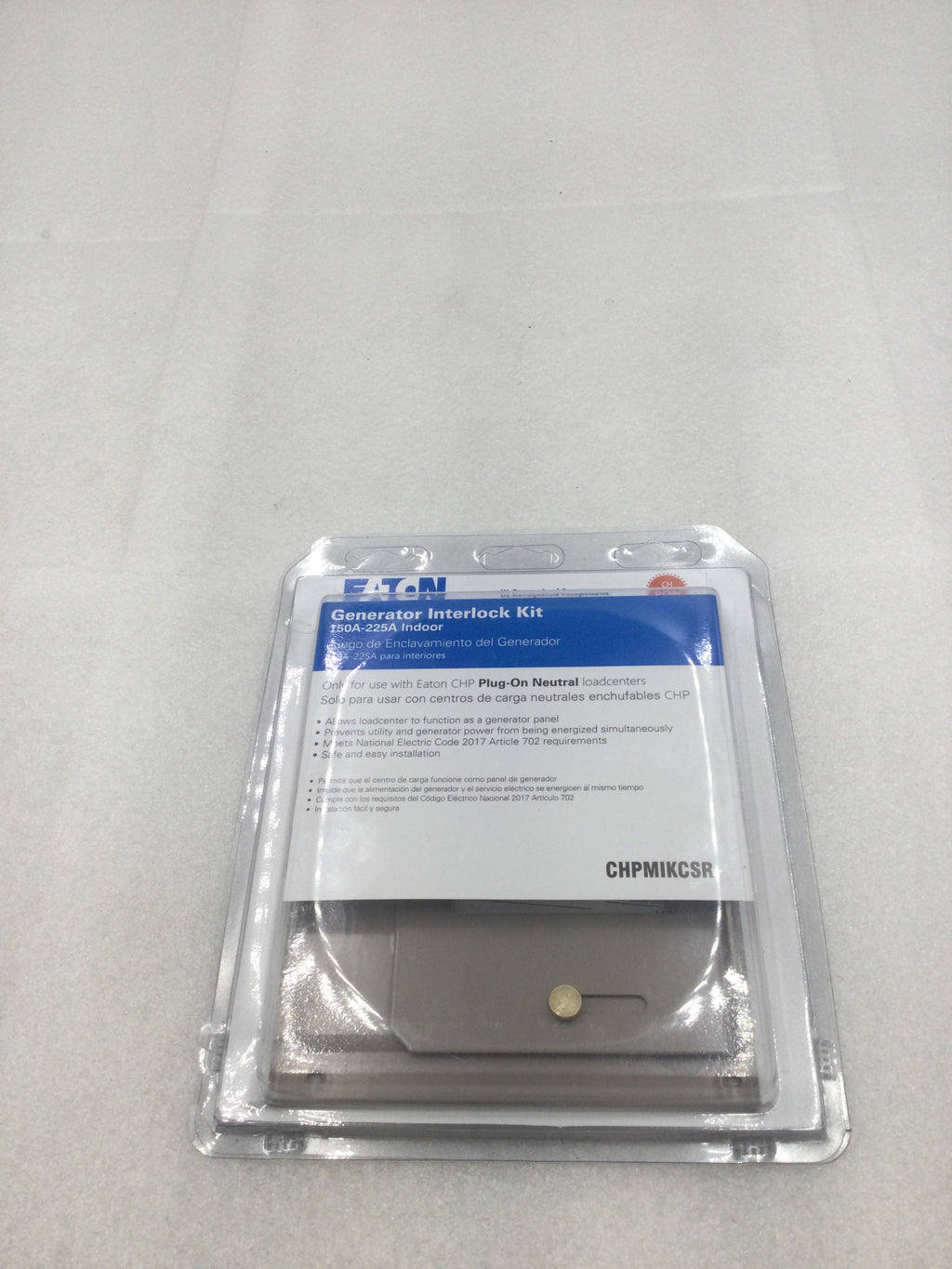 The Eaton CHPMIKCSR is a generator interlock kit engineered for 150-225 amp service panels, enabling safe, code-compliant integration of backup generators with existing electrical systems. This indoor-rated kit prevents dangerous backfeeding by mechanically interlocking the main breaker and generator breaker, ensuring only one power source operates simultaneously. Ideal for residential and light commercial applications requiring reliable standby power without costly panel upgrades.