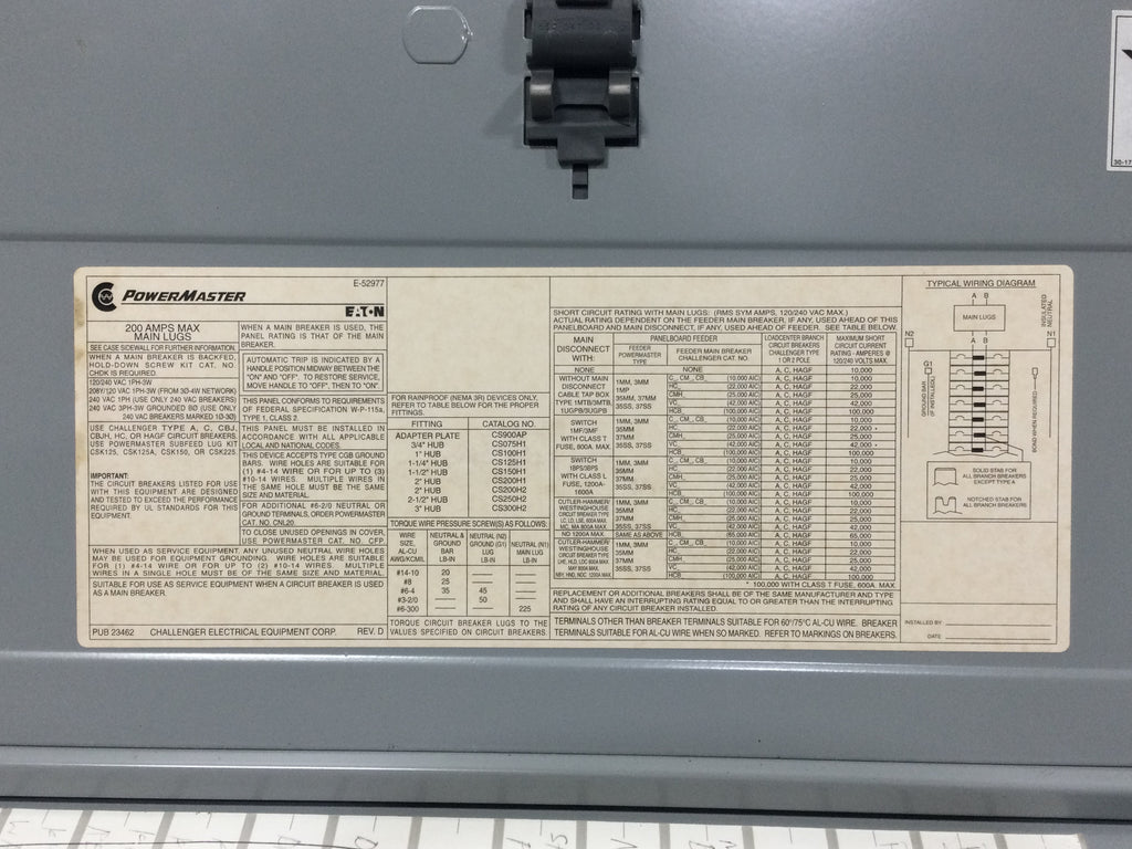 Eaton/Challenger E-52977 200 Amp 30 Spaces 120/240V Panel Door 30" x 15 3/8"