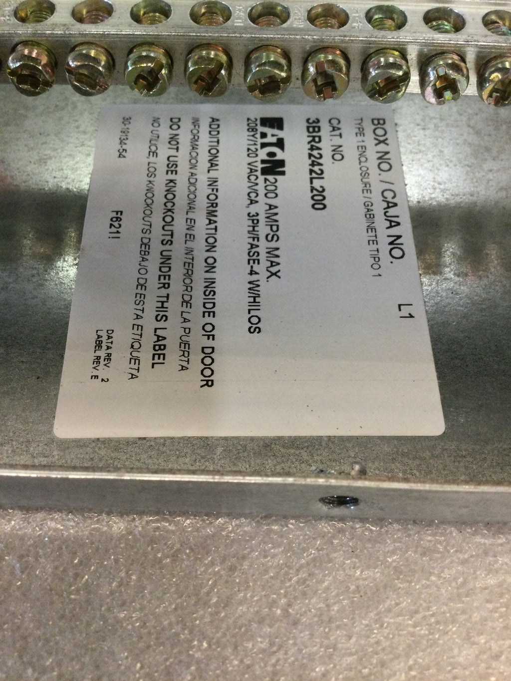 Eaton/Cutler-Hammer 3BR4242L200 3 Phase 200 Amp 120/240vac Panel Was Hung, Never Energized Type 3BR